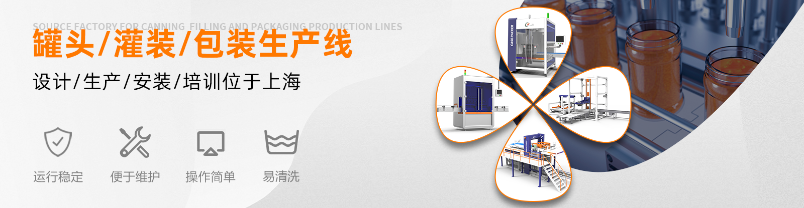 洗瓶,灌裝,旋蓋,封口,貼標(biāo),裝箱,碼垛,真空成型包裝機(jī) 輸送線及水果罐頭前處理設(shè)備,殺菌,預(yù)煮等)[查看詳 細(xì)]